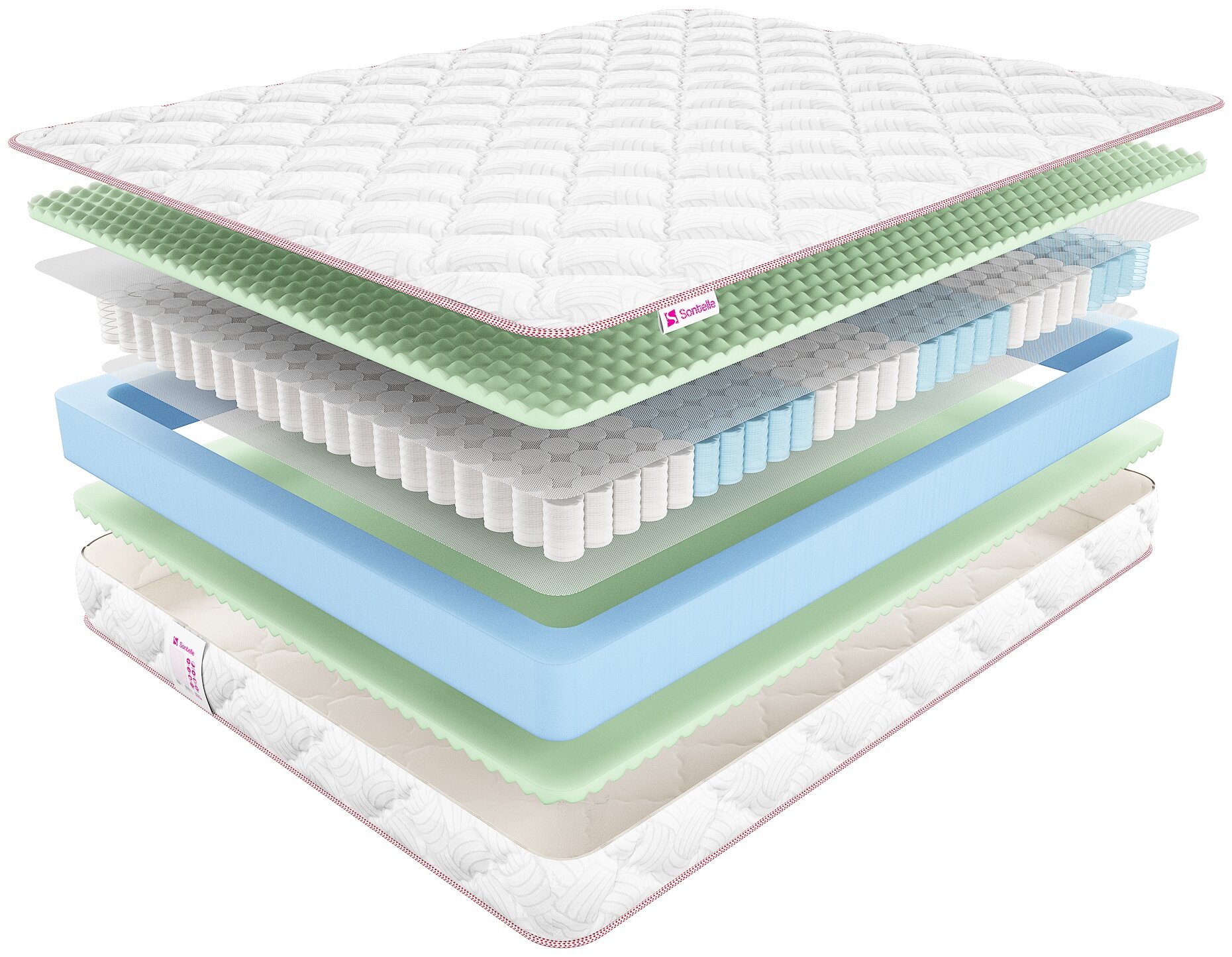 Лучшие цены. Модель Mills Balance - анатомический матрас от бренда Sontelle. Сердцевина матраса Mills Balance - блок независимых пружин. Каждая пружина отделена чехлом и работает независимо от остальных, что позволяет грамотно распределить нагрузку на матрас и обеспечить оптимальную поддержку позвоночника. Главным преимуществом независимых пружин является то, что задействуются только те пружины, непосредственно на которые идет нагрузка. Это позволяет исключить эффекта "гамака", что особенно важно для пар. Магазины в вашем городе.