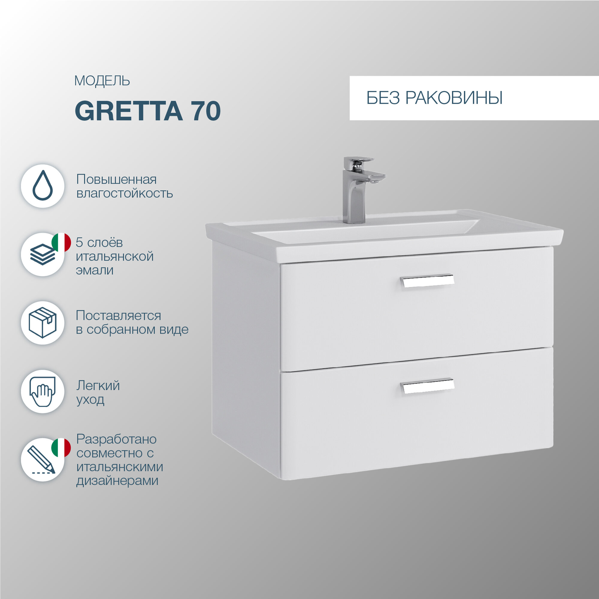 Тумба под умывальник Тумба подвесная SanStar Gretta 70 Без раковины для ванной комнаты, белая