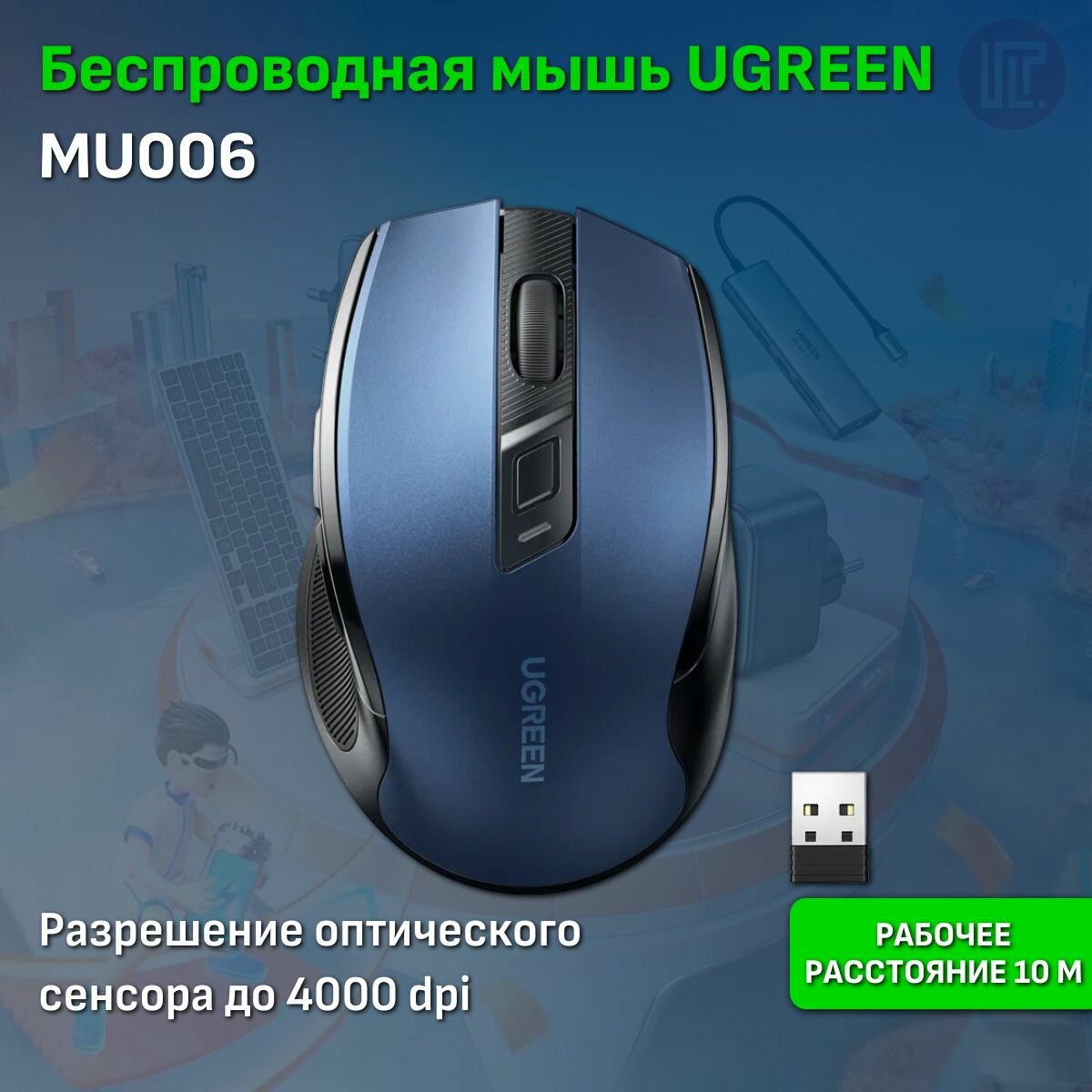 Мышь беспроводная Ugreen MU006 (15064), 2.4G 4000DPI, синий 1 080 ₽ Подробнее
