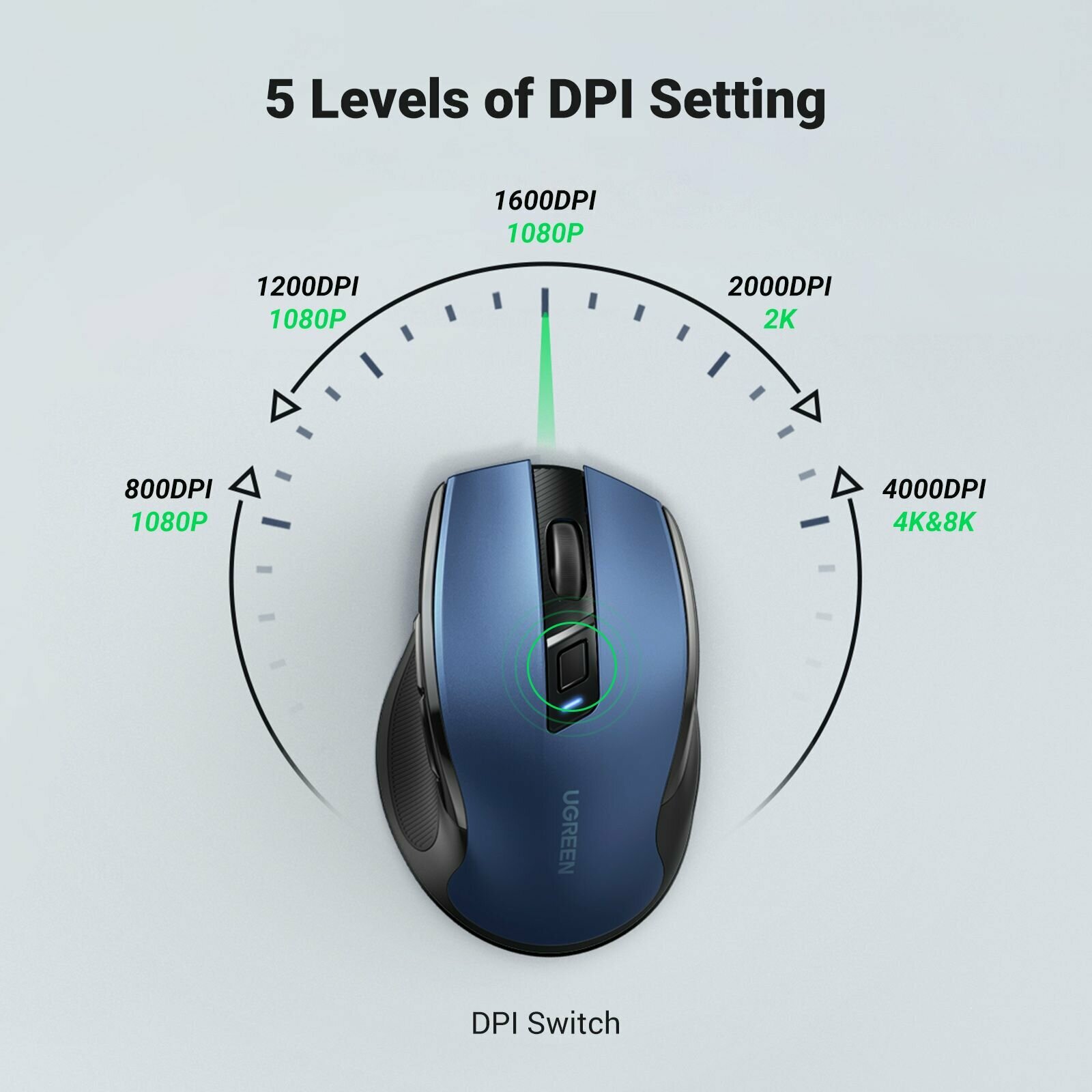Беспроводная компьютерная мышь UGREEN MU006 (25753) Ergonomic Wireless Mouse 2.4G 4000DPI Silence Design 2.4 GHz/BT. Цвет: синий