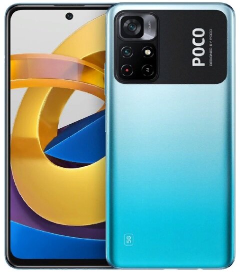 Смартфон POCO M4 Pro 5G 4Гб 64Гб Cool Blue 6.6", IPS, 2400*1080, 2*2.4+6*2.0ГГц, 50+8Мп, 16Мп, 5G, NFC, 5000мАч, And 11