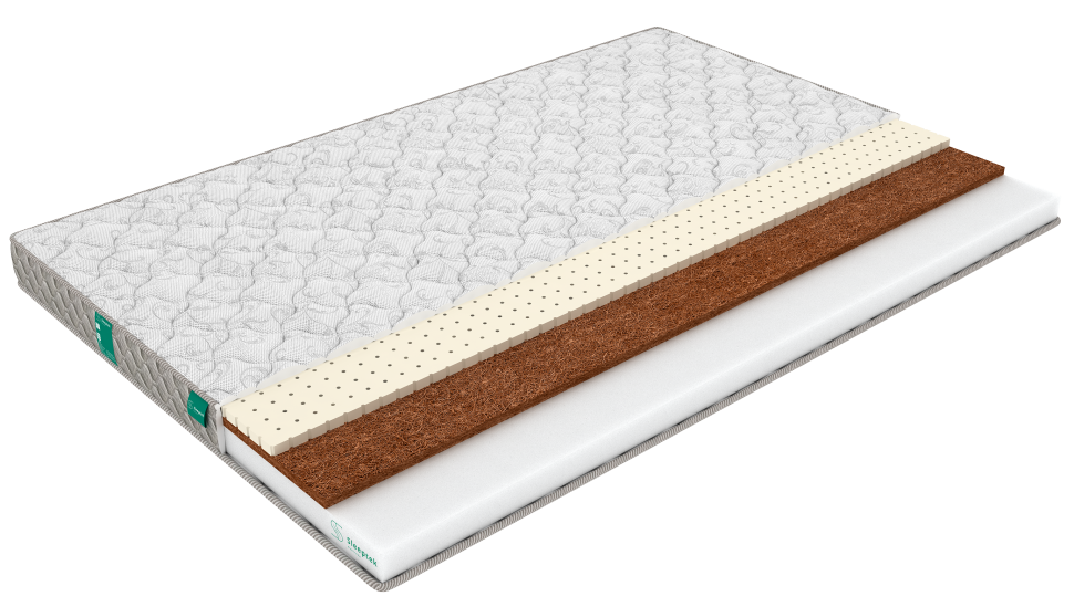 Лучшие цены. Беспружинный матрас со сторонами различной жесткости.С одной стороны использована комбинация из натурального латекса и койра кокоса. Такое сочетание придает этой стороне комфорт и упругость, что позволит снять накопленное за день напряжение. Оба наполнителя гигиеничны, не впитывают влагу и посторонние запахи, обладают долгим сроком службы. Основой матраса является плита ортопедической пены высотой 5 см – искусственного материала, придающего матрасу устойчивость и упругость Все три материала – полностью. Магазины в вашем городе.