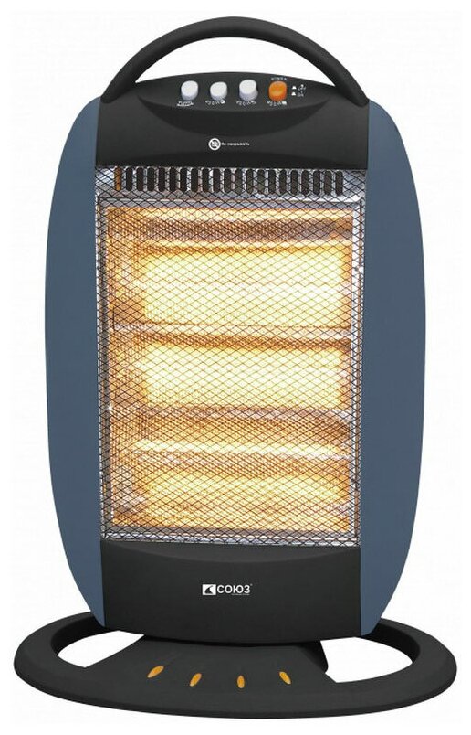 Лучшие цены. Обогреватель галогеновый инфракрасный СОЮЗ ГОС-1200. / Быстрый нагрев помещения засчет тепловой энергии в виде инфракрасных волн, направленных на окружающие предметы. Засчет принципа своей работы обогреватель возможно использовать на открытом воздухе: на террасах, верандах, в беседках. Три режима: эконом/умеренный/максимальный позволяют выбрать наиболее подходящий для пользователя уровень нагрева. Функция вращения позволяет равномерно распространять тепло, увеличивая скорость нагрева помещения. Магазины в вашем городе.