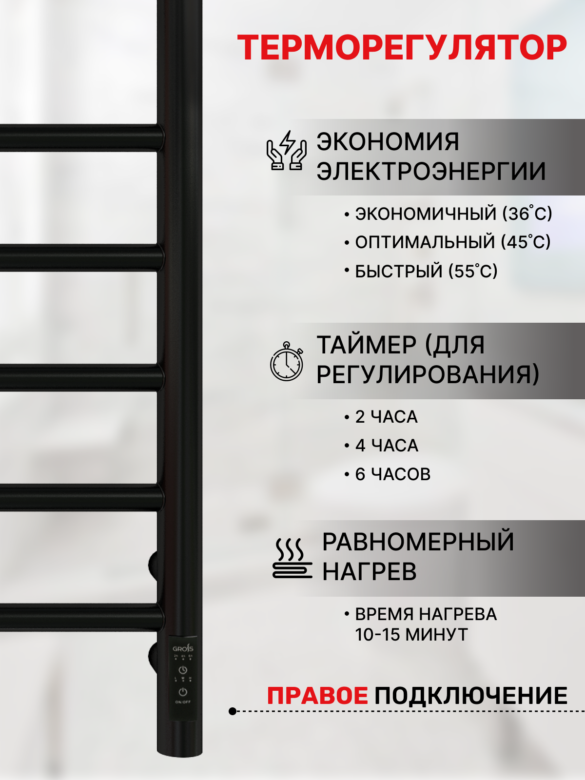 Лучшие цены. Полотенцесушитель электрический Laura GR-131 от бренда Grois - это стильный и практичный выбор для вашей ванной комнаты. Этот электрический полотенцесушитель имеет уникальный дизайн и изготовлен из высококачественной углеродистой стали, которая обеспечивает долгий срок службы и надежность. Полотенцесушитель имеет высоту 70 см и ширину 40 см, что позволяет использовать его в ванных комнатах любого размера. Он оснащен шестью перекладинами для удобного размещения полотенец и других вещей. Магазины в вашем городе.