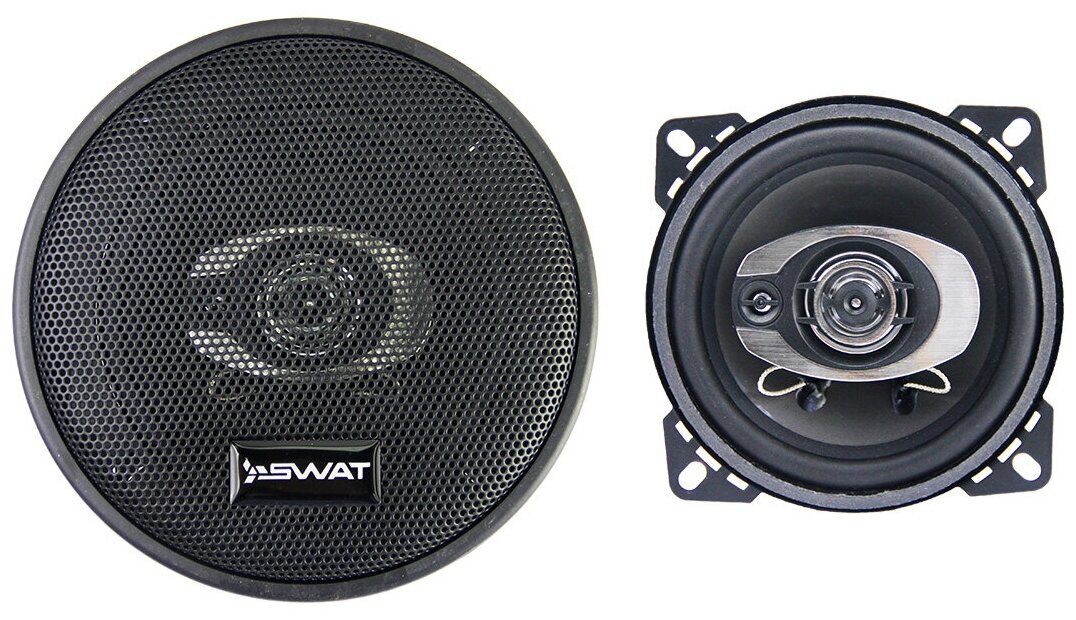 Лучшие цены. SWAT SP-B4 - трехполосные автомобильные колонки в линейке B-Series. Круглая классическая форма размером 4" (10 см). Диаметр звуковой катушки 1" (2,54 см). Тип акустической системы – коаксиальный. Устройство имеет номинальную мощность в 40 Вт, максимальная мощность равна 220 Вт. Звук воспроизводится в диапазоне от 70 Гц до 20 кГц. Чувствительность акустики равна 86 дБ, а импеданс 4 Ом. Диффузоры динамиков изготовлены из пропилена. Материал подвеса вспененный полиуретан, материал корзины – сталь. Магазины в вашем городе.