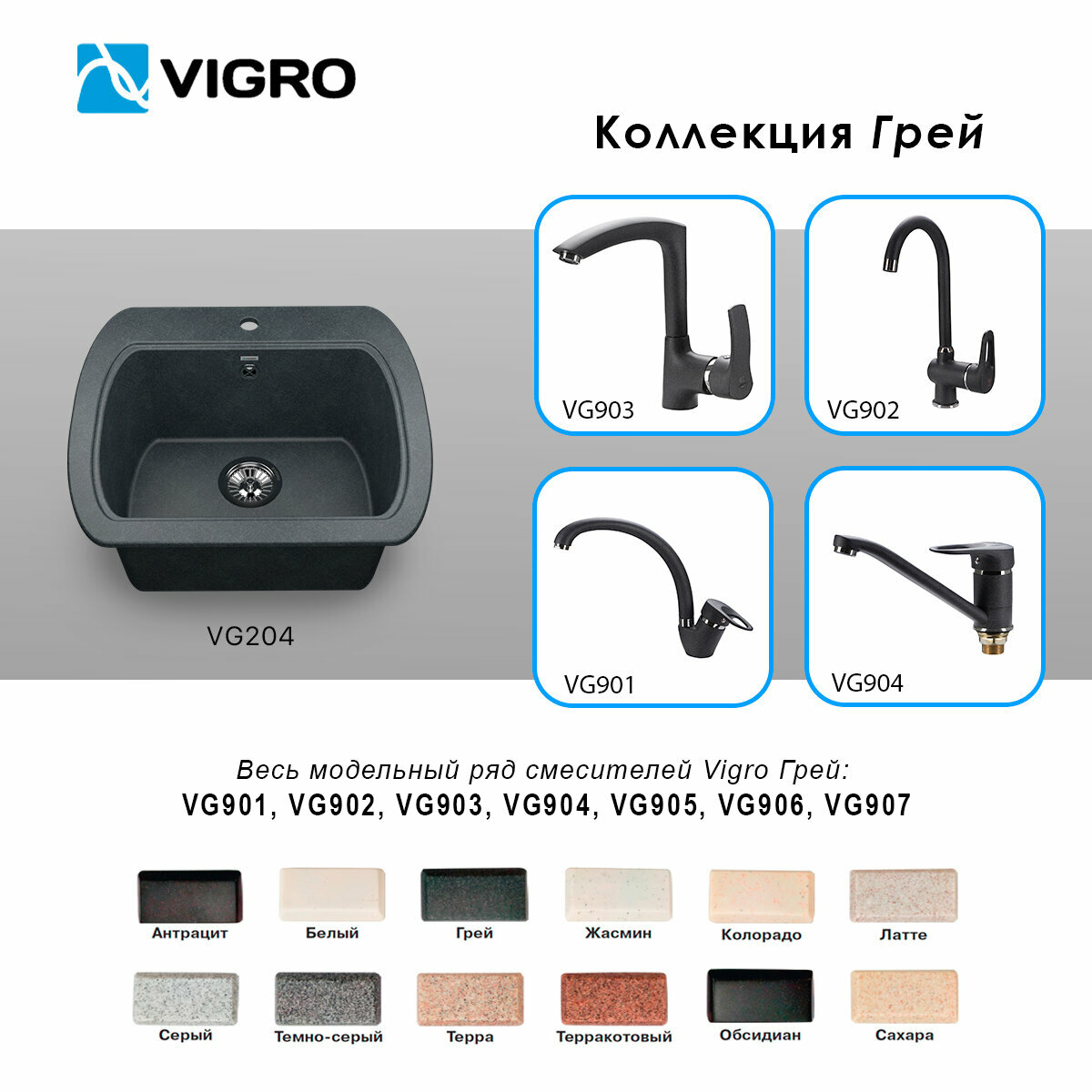 VIGRO мойка для кухни VG203 обсидиан