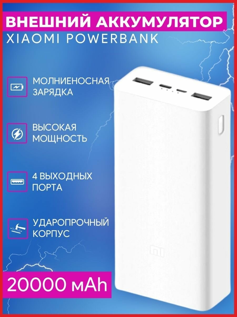 Портативный аккумулятор Xiaomi Power Bank 3 22.5W 20000 mah (PB2022ZM), Цвет: белый