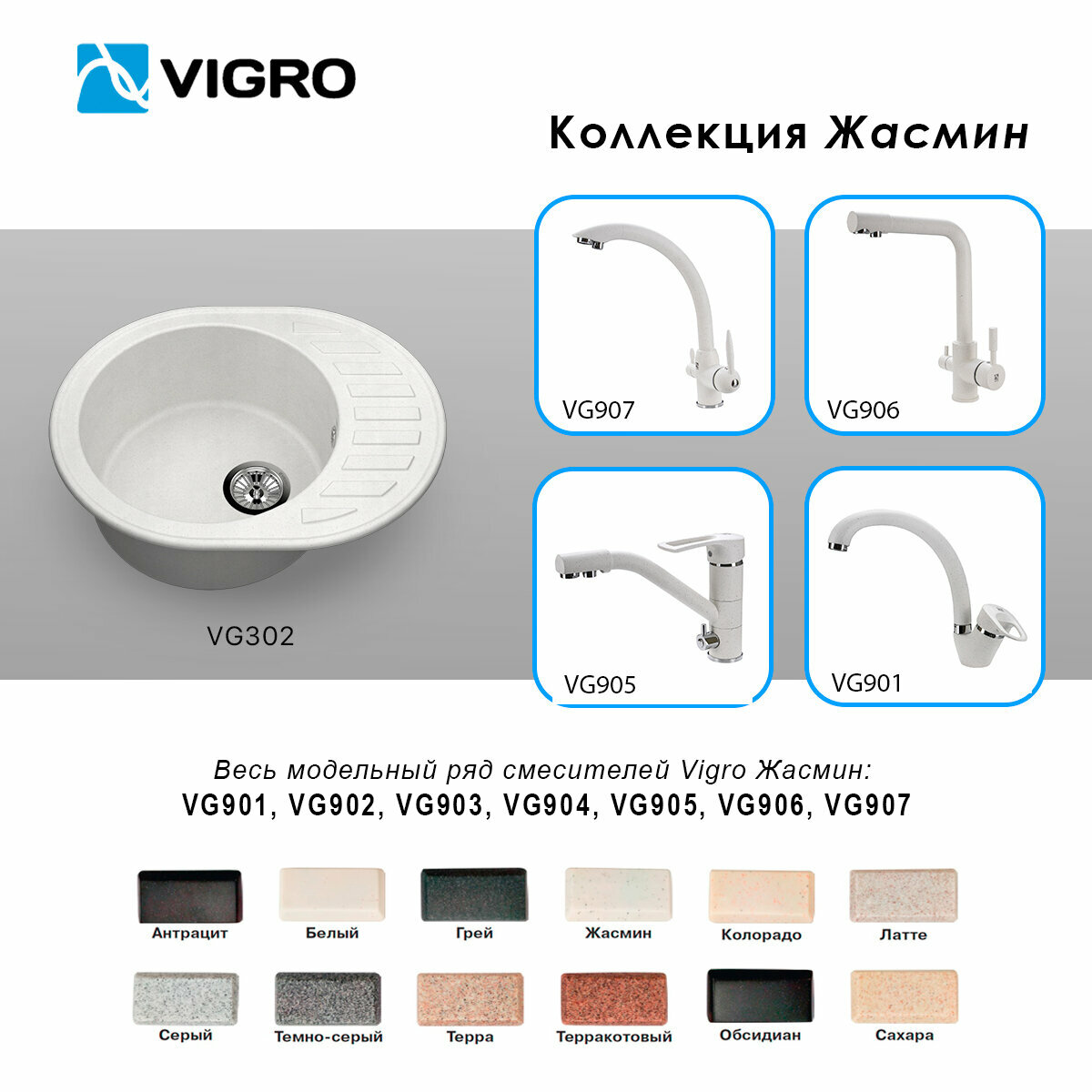 Кухонная мойка из искусственного камня Vigro VG302 жасмин (610*490*190)