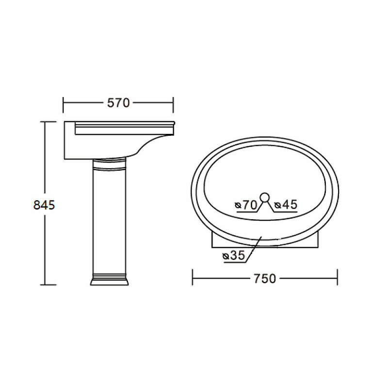 Лучшие цены. Раковина CeramaLux Lux Classic 75 4286 с пьедесталом.Характеристики: Цвет: белый. Поверхность: глянцевая. Материал: фаянс. Размеры (ШхВхГ): 75х84.5х57 см. Монтаж: подвесной. Отверстие под смеситель: 1. Расположение смесителя: посередине. С переливом. Диаметр слива: 45 мм. Форма: круглая. В комплекте поставки: раковина, пьедестал, слив-перелив. Магазины в вашем городе.
