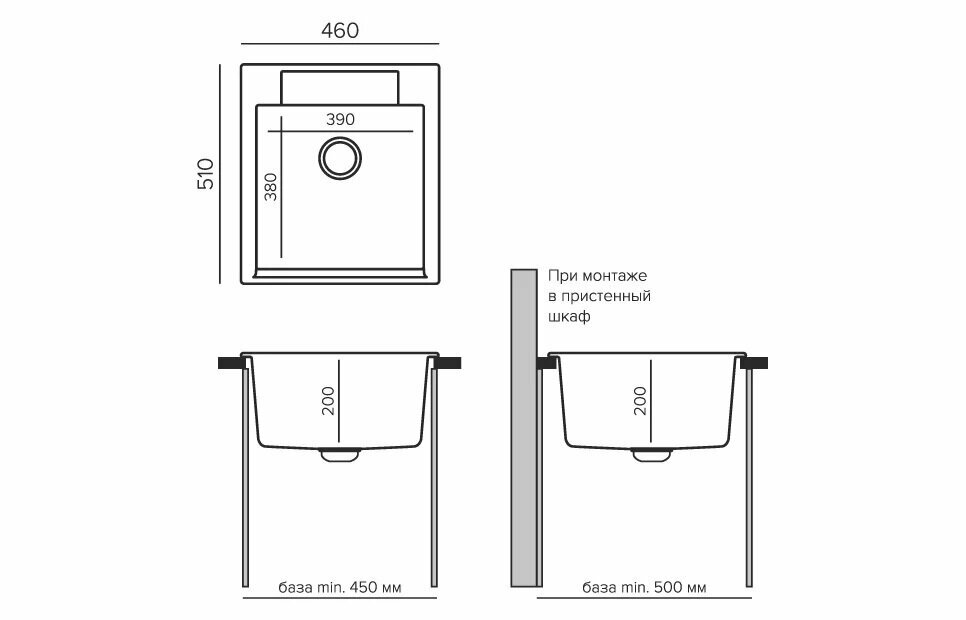 | Минимальная ширина шкафа (базы) | 450 мм |