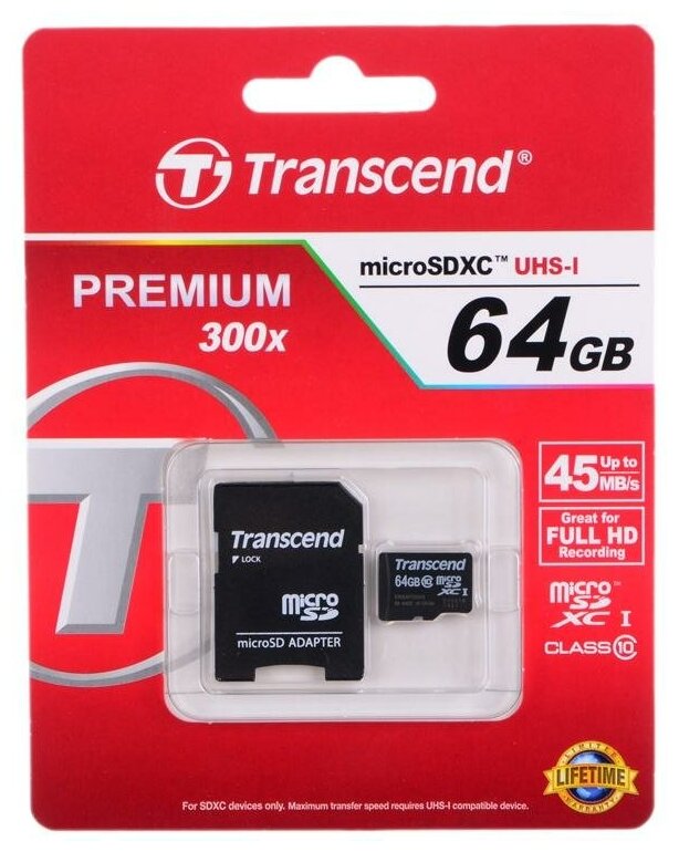 SD карта Transcend Premium 300X TS64GUSDXC10 2 622 ₽ Подробнее
