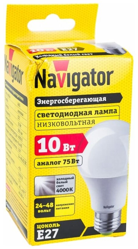 Лампа светодиодная 61 476 NLL-A60-10-24/48-4K-E27 (низковольтная) Navigator NAVIGATOR 61476 (1 шт.)
