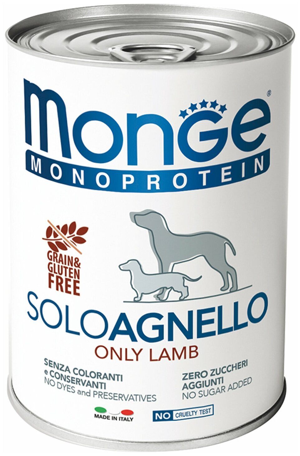 Monge Dog Monoprotein Solo влажный корм для взрослых собак c ягненком в консервах 400 г (24 шт в уп)