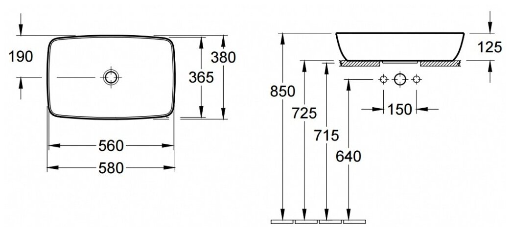 Раковина накладная Villeroy Boch Artis 58х38 см, без отверстия под смеситель, без перелива (41725801)