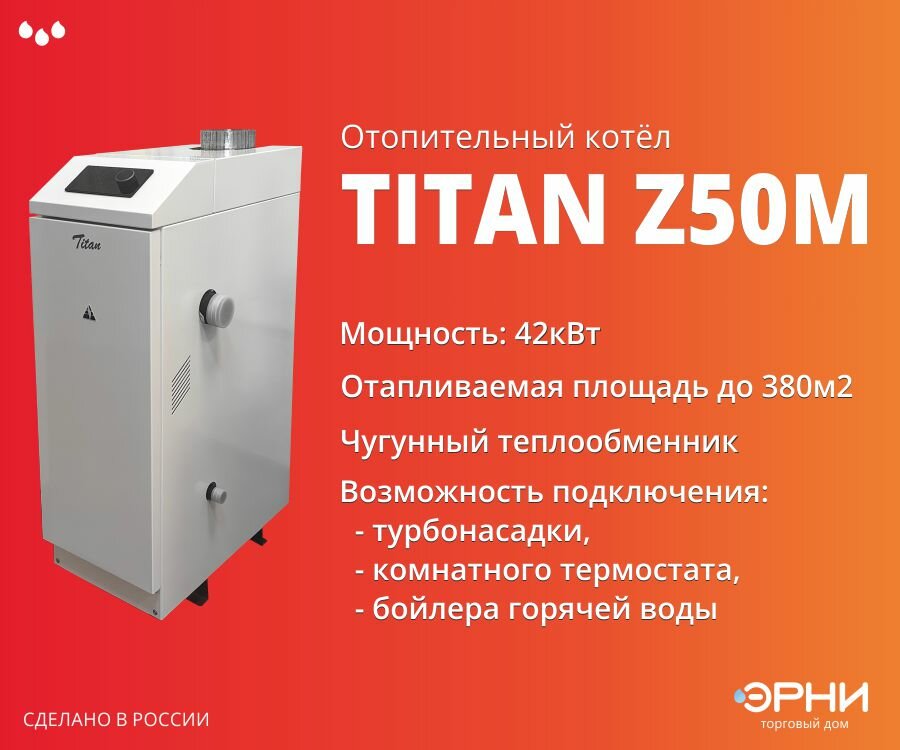 Отопительный котел Газовый напольный чугунный отопительный котёл "TITAN Z50M" (42 кВт.)