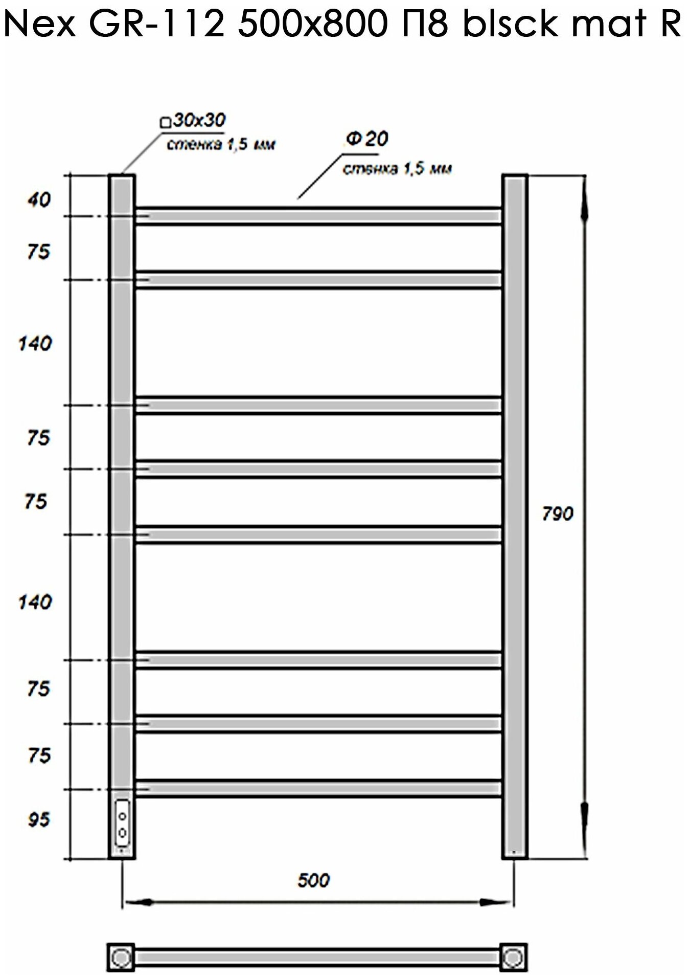Лучшие цены. Высота: 80 см; Ширина: 50 см; Количество перекладин: 8; Коллекция: Nex; Тип: электрический; Форма: лесенка; Направление подключения: нижнее, слева; С боковым подключением: нет; Глубина: 4 см; Мощность: 130 Вт; Поворотный: нет; Полка в комплекте: нет; Материал: нержавеющая сталь; Подключение: скрытое электрическое соединение, электропровод с вилкой; Монтаж: подвесной; Цвет: черный; Гарантия на полотенцесушитель: 24 мес; Страна происхождения бренда: Россия; Теплоноситель: греющий кабель; Терморегулятор: есть. Магазины в вашем городе.