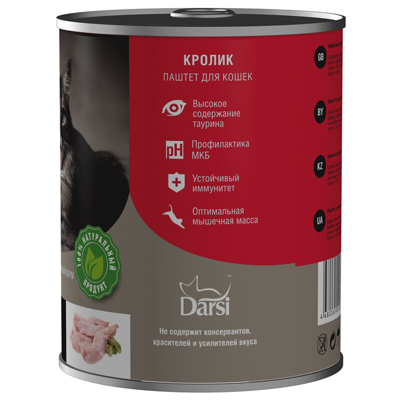 Влажный корм для кошек Darsi Паштет, кролик, 6*340 г (6 банок)