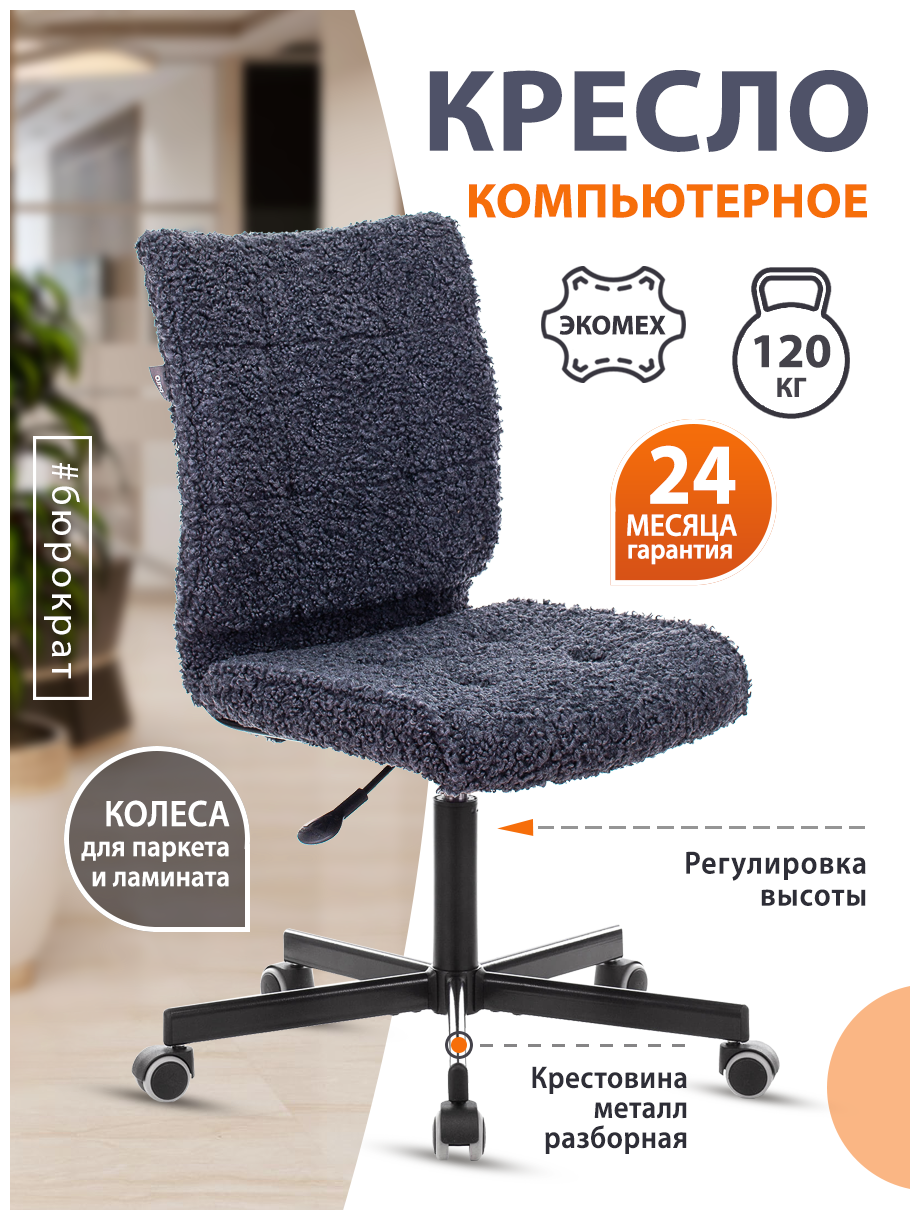 Кресло Бюрократ компьютерное серое, экомех, крестовина металл - Офисное рабочее кресло оператора 6 750 ₽ Подробнее
