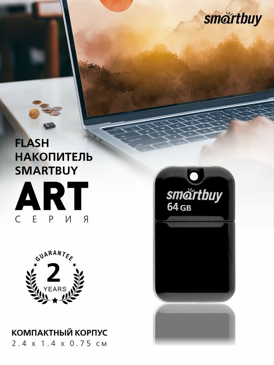 Флеш-карта SmartBuy 64 гб, Art, USB 2,0, черная (SB64GBAK)