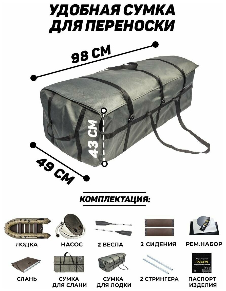 Надувная лодка Надувная лодка ПВХ Ривьера Компакт 3600 СК "Комби" под мотор. слань+киль в комплекте
