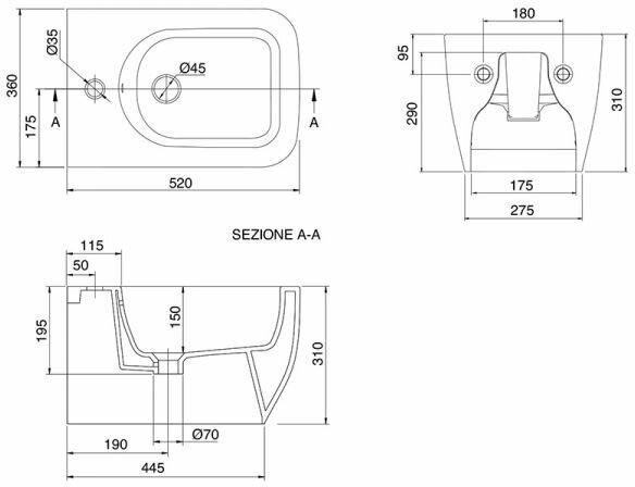 Биде Биде Scarabeo Teorema 2.0 5127 подвесное Белое