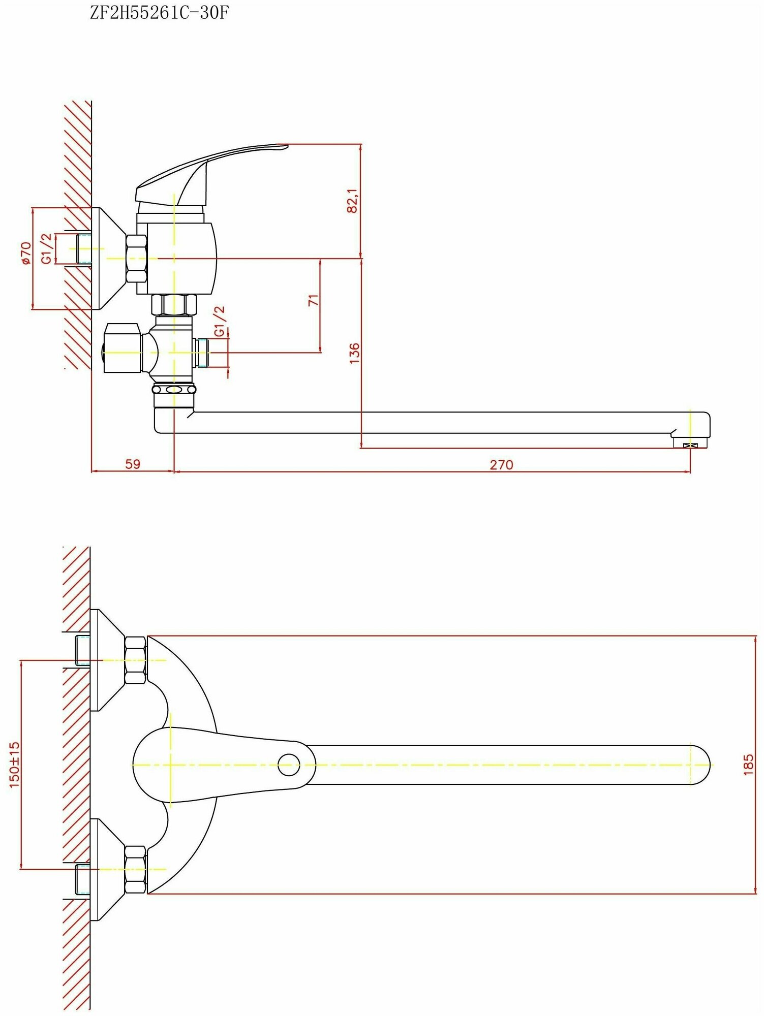 Лучшие цены. Керамический картридж 40 мм. Смеситель изготовлен из металлического сплава. Диаметр декоративных чашек 70 мм. Душевой гарнитур в комплекте. Межосевое расстояние (расстояние между выходом горячей и холодной трубы) 150 мм. Данное расстояние изменяется за счет входящих в комплект эксцентриков на 15 мм. в большую или меньшую стороны. Цвет хром Характеристики: Монтаж: настенный Управление: рычажное Материал: металлический сплав Цвет: хром Форма: округлая Стилистика дизайна: современный стиль Назначение: для. Магазины в вашем городе.