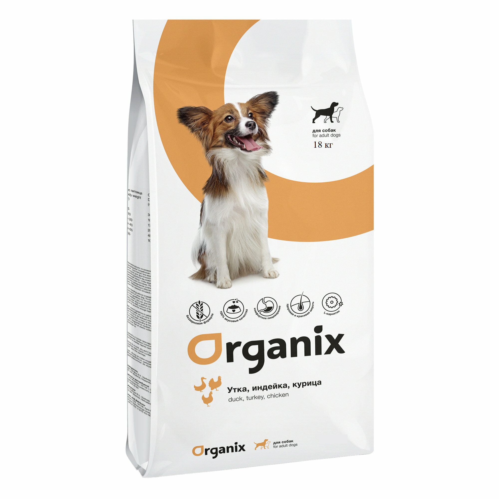 Сухой корм для собак ORGANIX беззерновой, утка, индейка, курица 1 уп. х 1 шт. х 18 кг