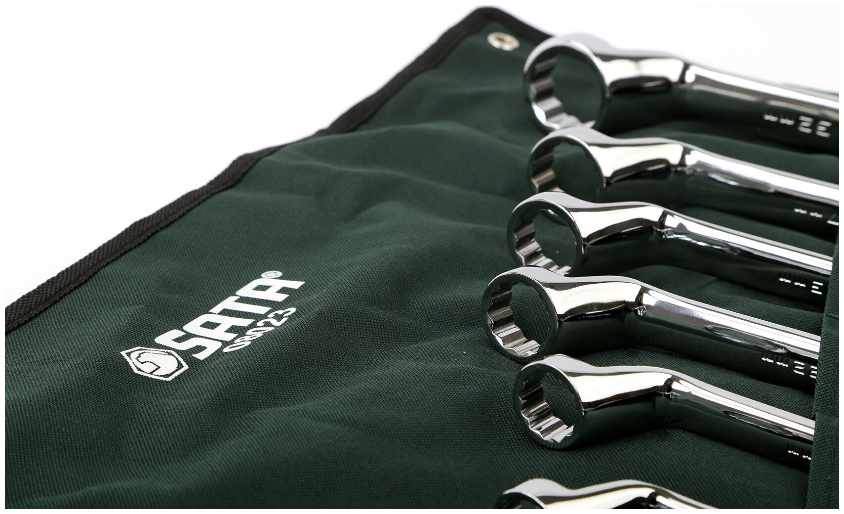 Лучшие цены. Набор накидных ключей глубокого смещения Sata 08023 состоит из двухконечных ручных инструментов, имеющих отогнутые головки для возможности работы с крепежными элементами, расположенными в глубоких посадочных местах. Для надежного хранения и транспортировки ключей в комплекте к набору предусмотрен чехол. Размеры ключей: 6х7 мм, 8х9 мм, 10х11 мм, 12х13 мм, 14х15 мм, 16х17 мм, 18х19 мм, 20х22 мм, 21х23 мм, 24х27 мм, 30х32 мм. Магазины в вашем городе.