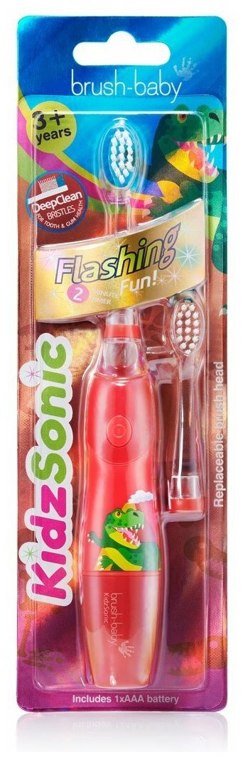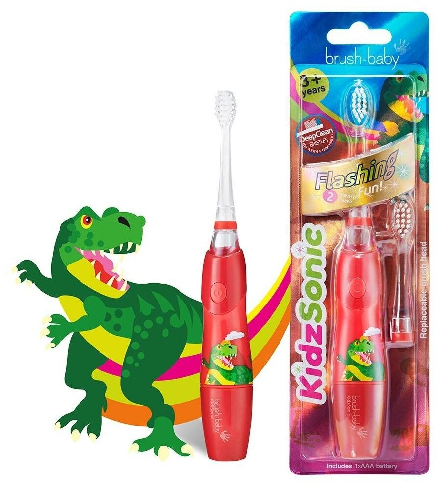 Электрическая зубная щетка Звуковая зубная щетка Brush-Baby KidzSonic Динозавр .