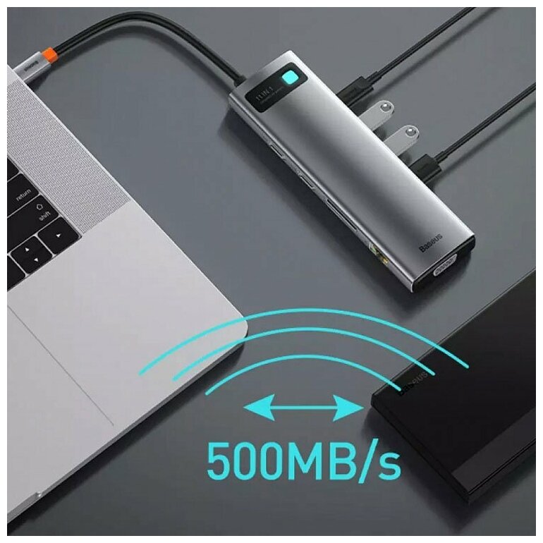 USB-C хаб Baseus 11-in-1 HUB PD 100W SD/Micro SD 3USB/1USB-C/1x3.5mm/2HDMI 4K 30Hz/VGA/1Ethernet (CAHUB-CT0G), тёмно-серый