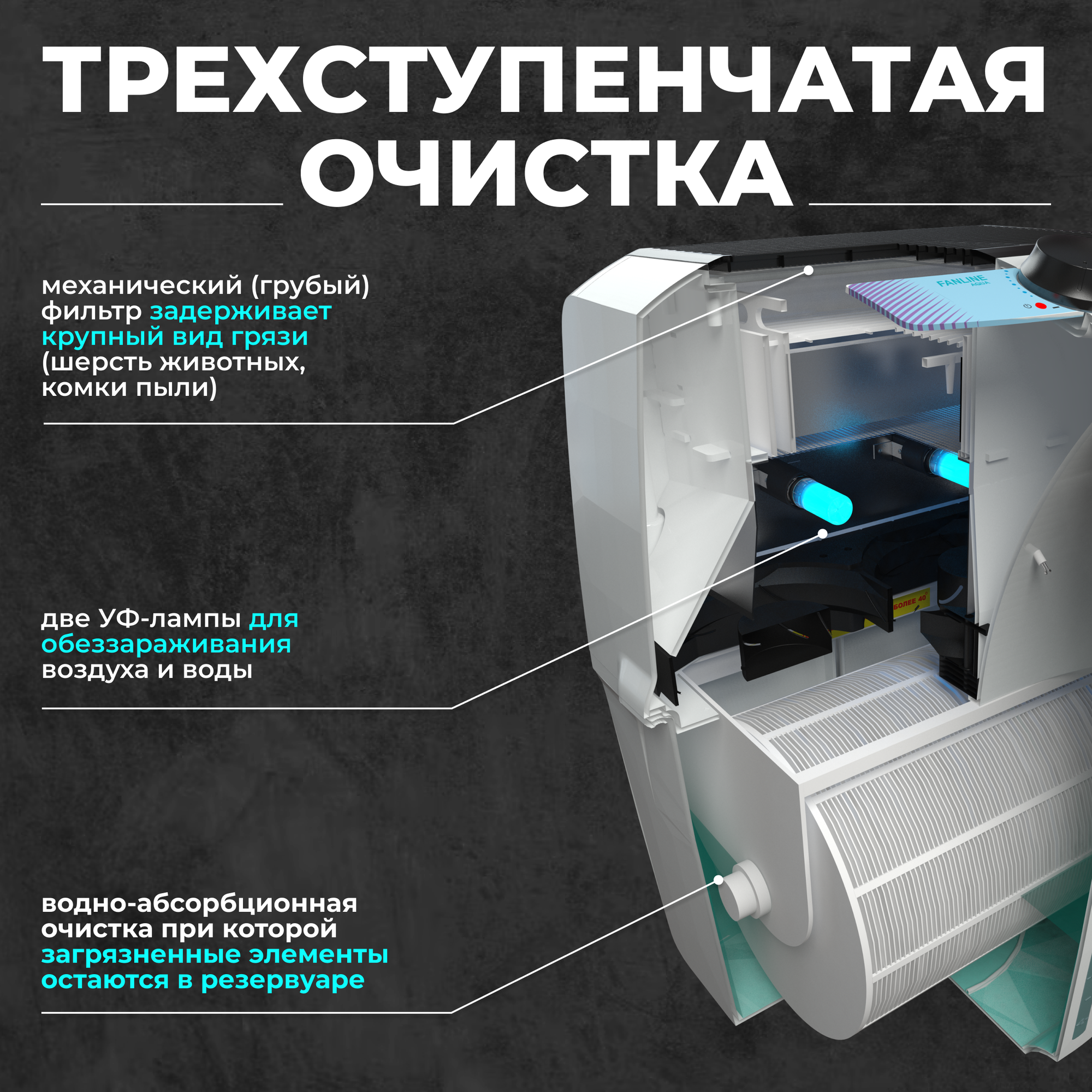 | Фильтры очистки | предварительныйэлектростатический фильтргидрофильтрация |