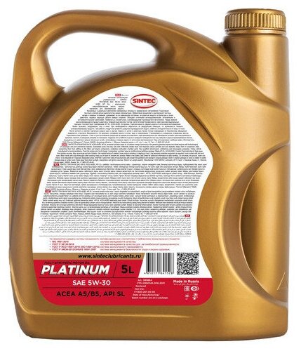 Моторные масла SINTEC Platinum SAE 5W-30 API SL, ACEA A5/B5 5л Акция