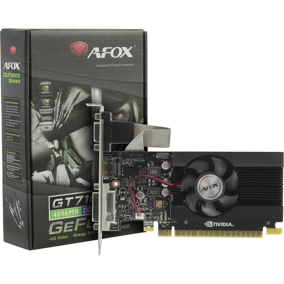 Видеокарта Afox GeForce GT710 4GB DDR3 64BIT DVI HDMI VGA LP SINGLE FAN (AF710-4096D3L7-V1) RTL