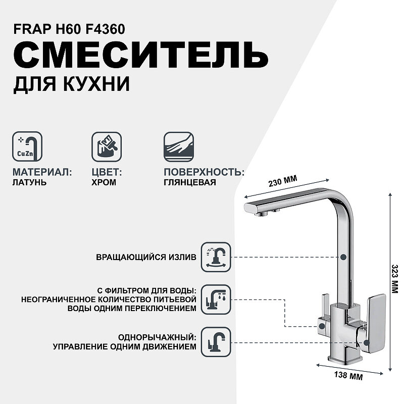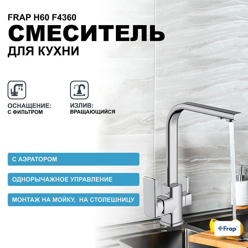 Смеситель для кухни Frap H60 F4360 Хром 8 393 ₽ Подробнее