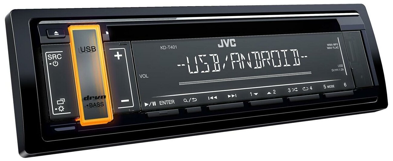 Лучшие цены. Даже в самой долгой поездке любимая музыка будет радовать великолепным качеством с автомобильной магнитолой JVC KD-T401! Воспроизводить треки вы сможете с USB-накопителей, дисков, вашего смартфона или mp3-плеера. JVC KD-T401 поддерживает такие популярные форматы, как MP3 и WMA. Пиковая мощность 4x50 Вт гарантирует громкий звук без помех и искажений. Магазины в вашем городе.