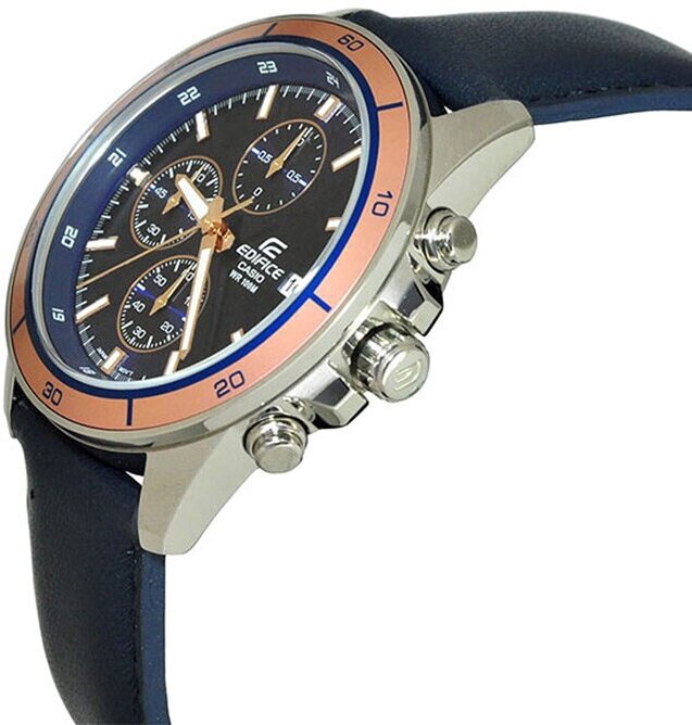 Лучшие цены. Мужские наручные часы Casio EFR-526L-2A кварцевые (батарейка является элементом питания). Корпус стальной с частичным PVD покрытием с синим циферблатом и минеральным стеклом, которое еще называется ударопрочным, браслет - кожаный ремешок. Модель Casio EFR-526L-2A обладает степенью влагостойкости 100 м (10 АТМ), где допускается плавание в бассейне или в море, занятие водными видами спорта, для профессионального спорта рассмотрите модели от 200 м (20 АТМ). Магазины в вашем городе.