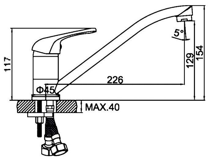 Смеситель Смеситель для кухни, дл.излив, карт.35мм, шпиль Ledeme, 1/20; L4239