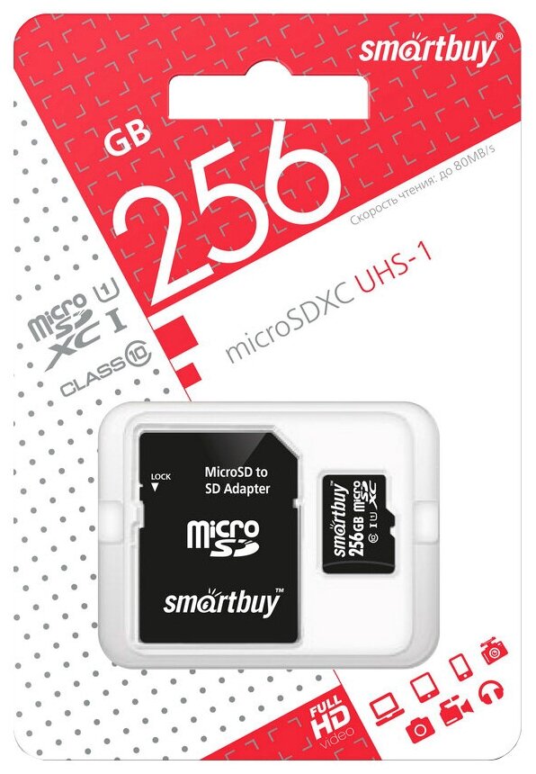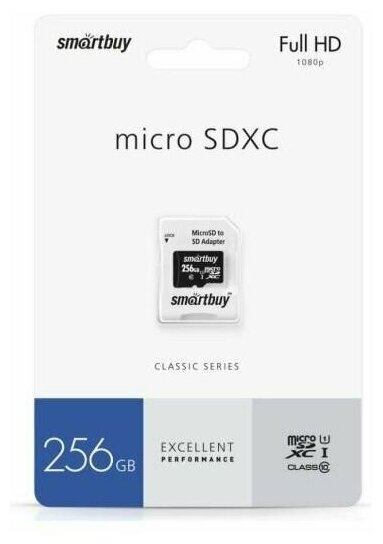 SMARTBUY (SB256GBSDCL10-01) MicroSDXC 256GB Class10 UHS-1 + адаптером (Карта памяти)