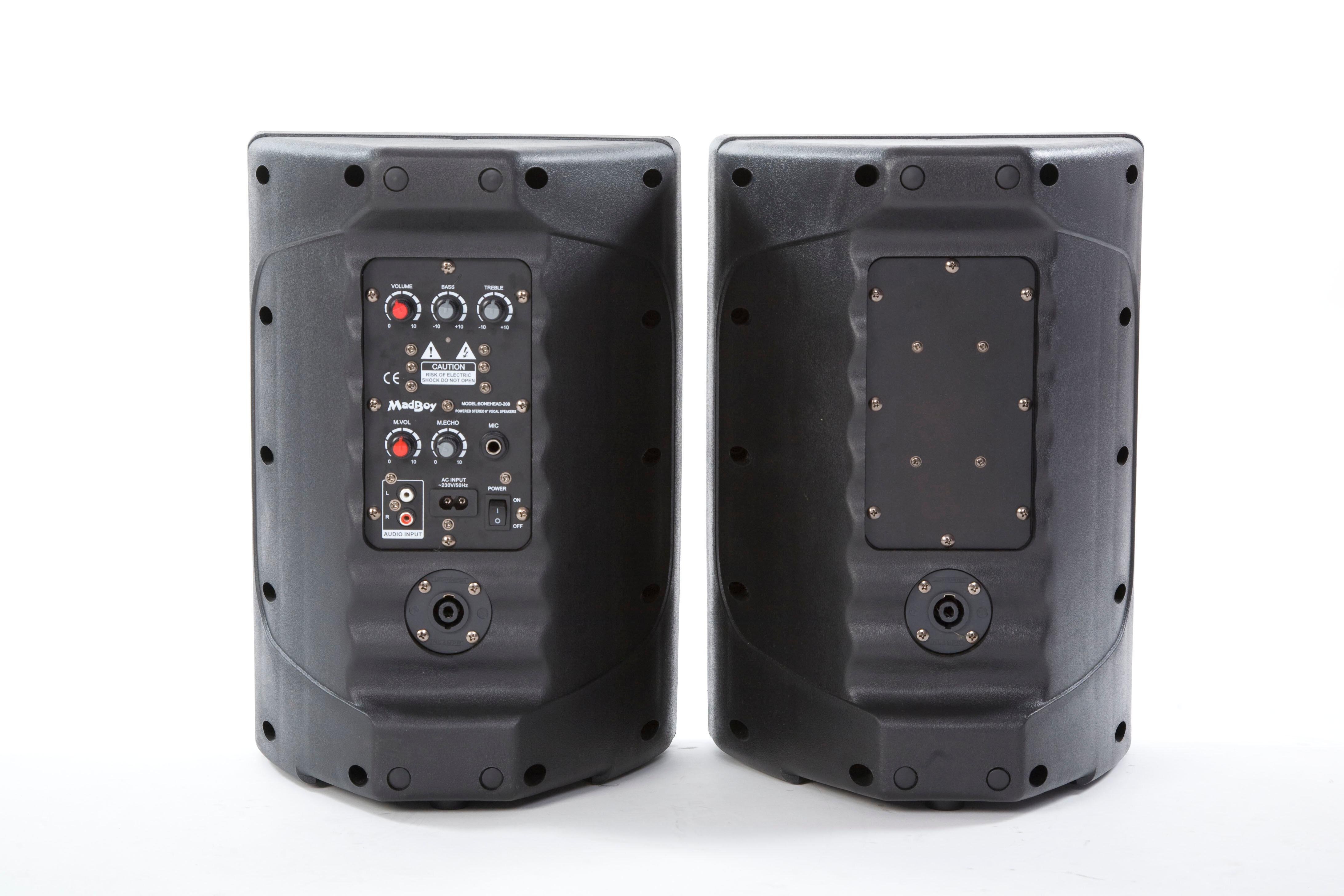 Лучшие цены. MadBoy BONEHEAD-208 - Это пара качественно звучащих активных колонок для караоке систем. Для персональной акустики их можно использовать в качестве отдельного решения. Больше нет нужды во внешнем усилителе - так как у MadBoy BONEHEAD-208 есть встроенный усилитель. Также на задней панели колонки есть микрофонный вход с регулируемыми эхом и громкостью. Уровни тембра микрофона (высокие и низкие частоты) также регулируются на задней панели активной колонки. Магазины в вашем городе.