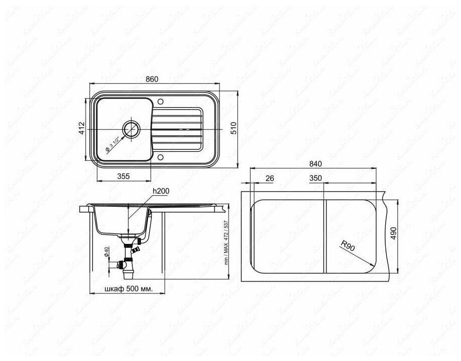 | Размеры основной чаши (ДхШхГ) | 355х412х200 мм |