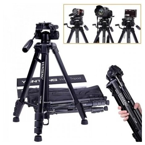 Трипод YUNTENG VCT-668, напольный для фото/видеокамер, 460-1480мм, черный