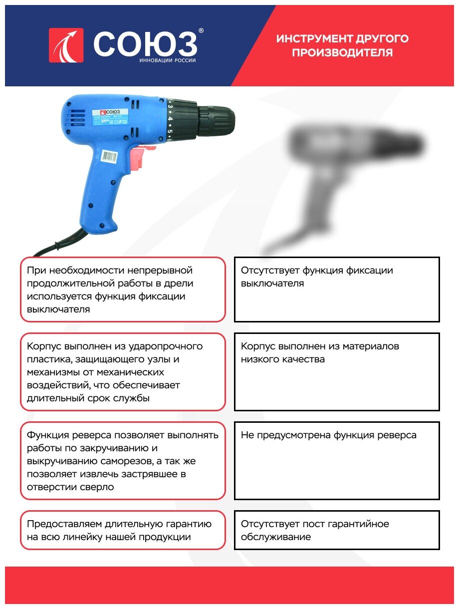 Дрель-шуруповерт СОЮЗ ДУС-2142, 450 Вт, без аккумулятора