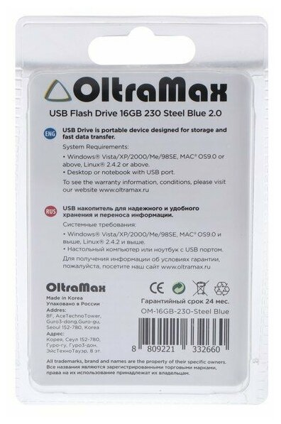 OltraMax Флешка OltraMax 230, 32 Гб, USB2.0, чт до 15 Мб/с, зап до 8 Мб/с, синяя 1 131 ₽ Подробнее