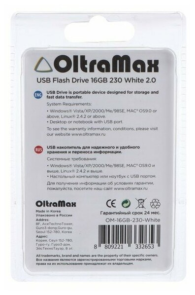 Флэш-накопитель OLTRAMAX OM-16GB-230, USB 2.0, белый