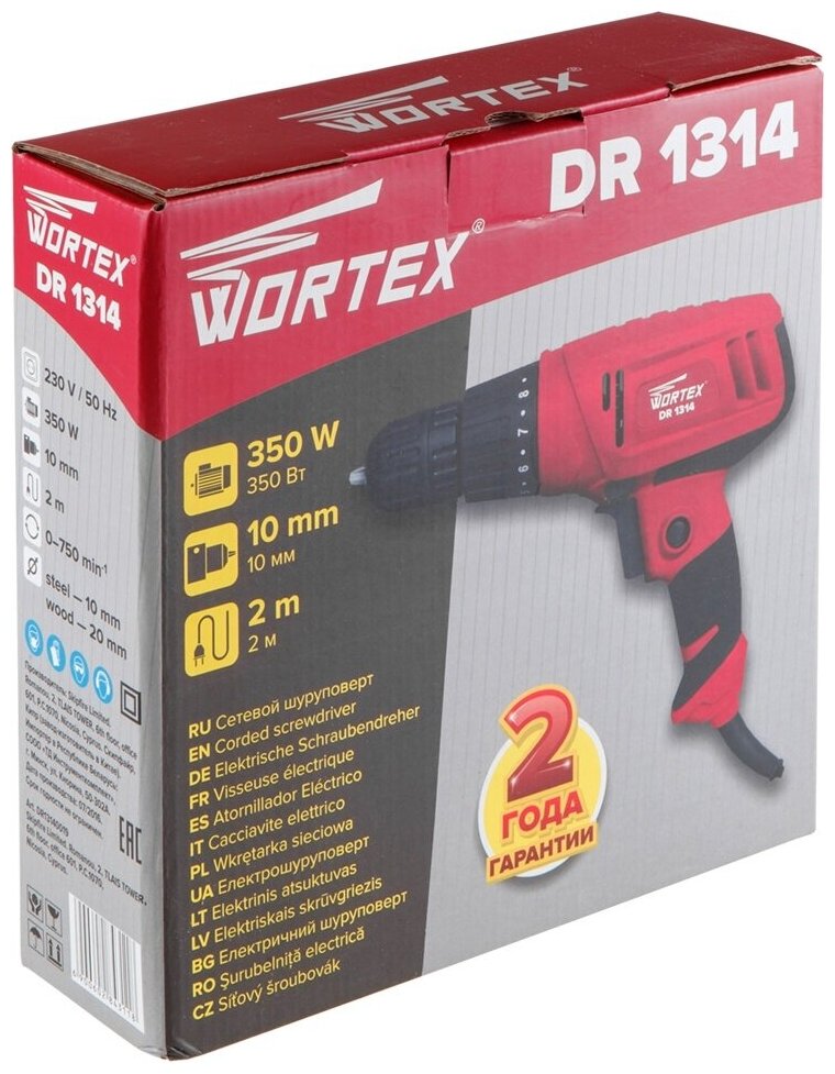 Дрель/шуруповерт Дрель-шуруповерт Wortex DR 1314, 350 Вт, без аккумулятора