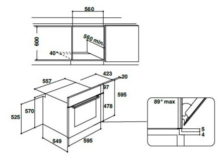 | Размеры для встраивания (ВхШхГ) | 583x560x560 мм |