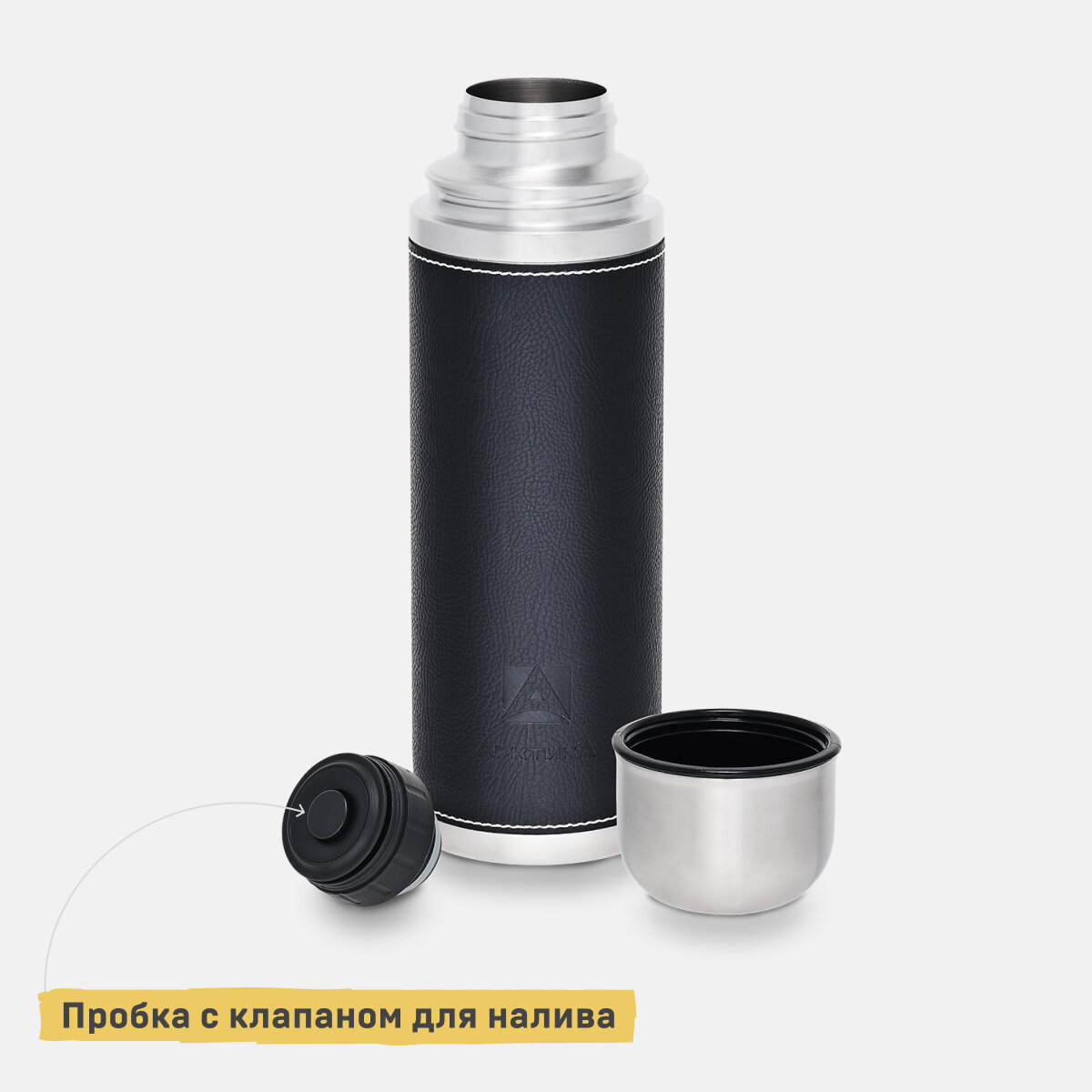 Термос Арктика 108-1000 вакуумный, в кож. оплетке, 1000мл, черный 4-19940