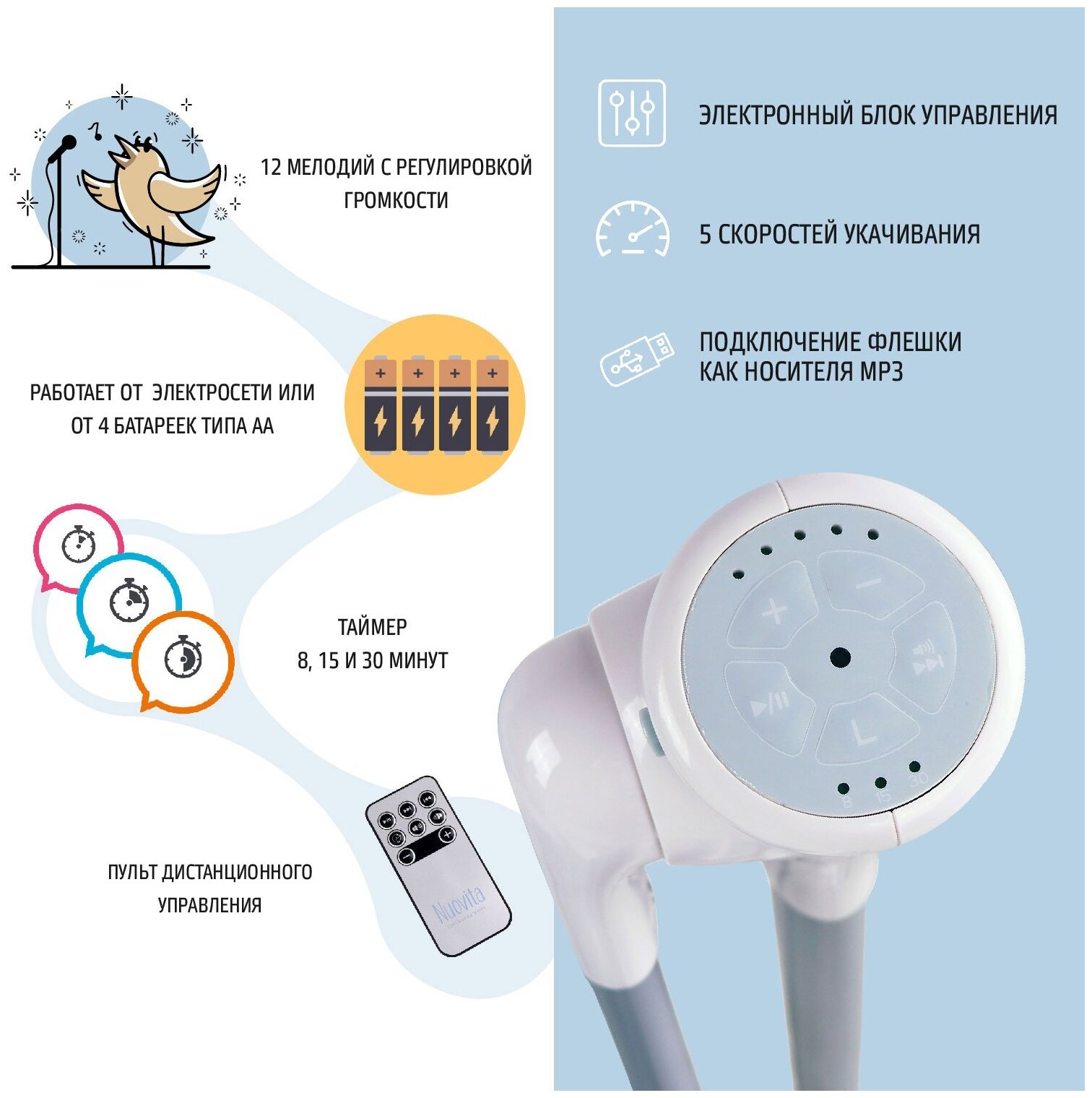 | Функция качалки | + (5 скоростей качания) |