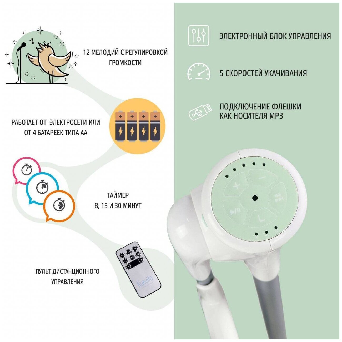 | Функция качалки | + (5 скоростей качания) |