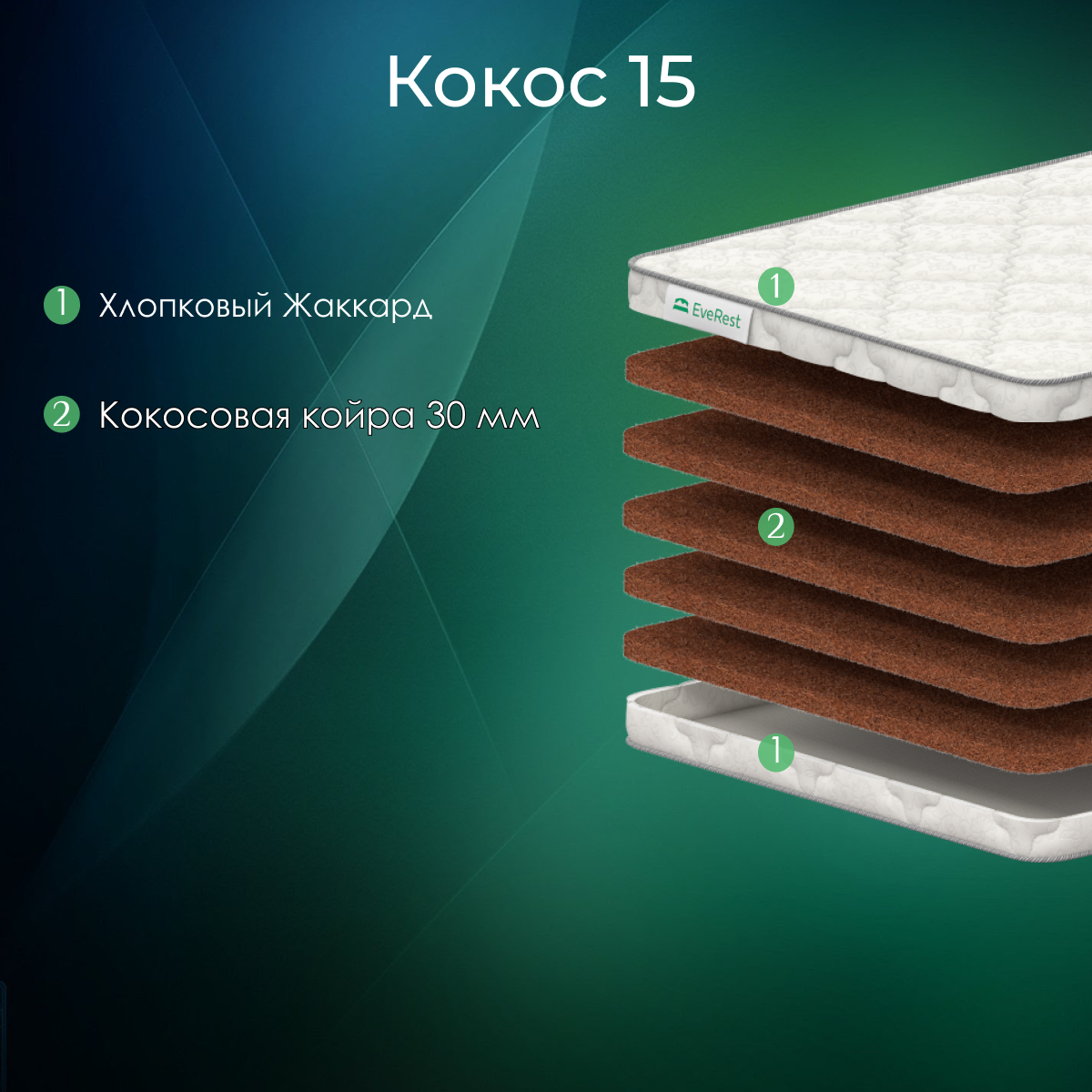 Матрас Everest Кокос 15 - беспружинный h 15 см латексированный кокос высокой жесткости полноразмерный 140х186 33 404 ₽ Подробнее